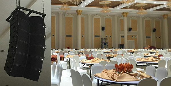 沐鸣2南京线阵音响成功应用于南京某大酒店宴会厅。既为婚庆喜宴等活动提供美妙音乐,又不影响宴会厅的整体美观,是实用又美观的线阵音响。宴会厅扩声系统采用了JSL LAB系列6+2小型南京线阵音响为主扩声,舞台前方合理分布4只CU-12音箱做为舞台补声,以及防啸叫无线话筒及周边设备等。