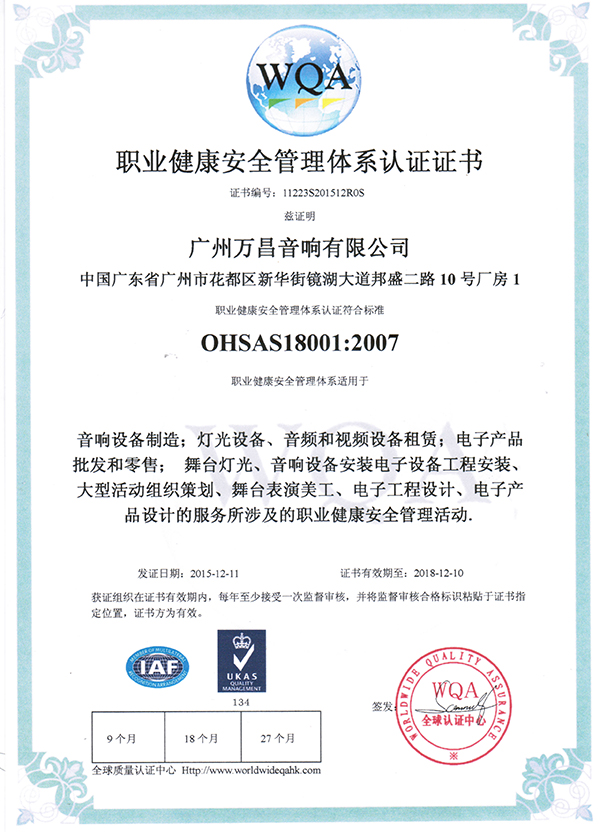 沐鸣2荣誉 » 职业健康安全管理体系认证证书