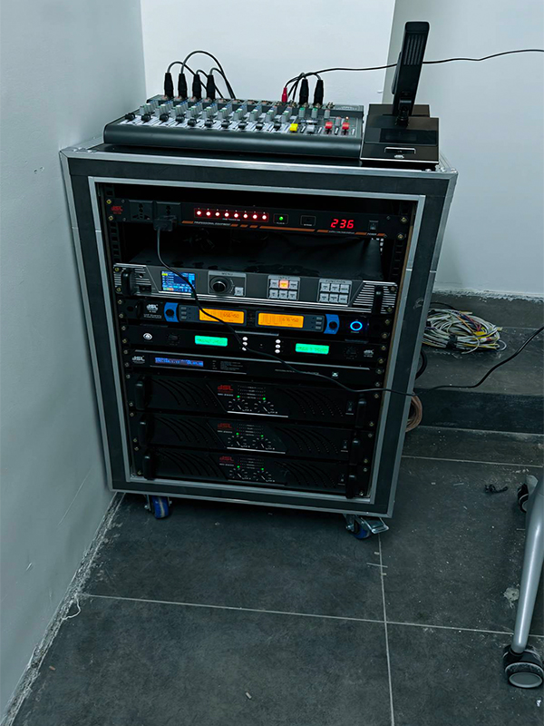 JSL沐鸣2专业音响根据场地实际情况制定了音响方案,保证整个会议室的每个角落的声场听觉均匀,没有出现失真,偏音,混音,回响等不良音响效果。