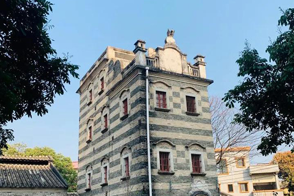 走进小镇,你会发现小镇散落着将近50栋类似开平碉堡的华侨楼群,这些都是建于清末民初的老建筑,看上去就是一个具有历史感的西洋建筑群。这些碉楼都是在上世纪中期,远渡重洋的华侨纷纷回乡买地所建。每座碉楼楼顶建筑最具特色,让碉堡散发出浓郁的异国风情,窗棂石柱上雕刻着中式图案,融合了浓厚的华侨文化特色和中西建筑元素。