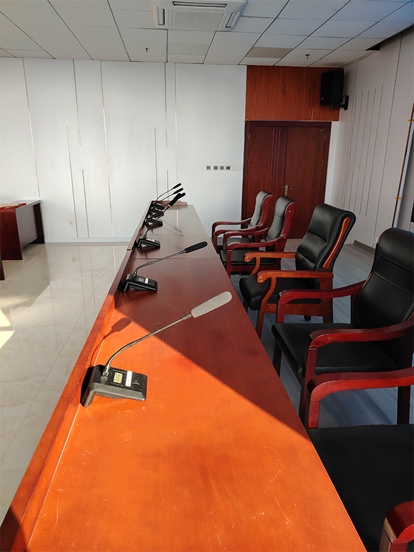 由于此政府会议室使用时间长了,原扩声系统比较老旧,话筒声音清晰不够,音响使用有啸叫,有底噪,系统不稳定,无法满足现代会议扩声系统需求,针对以上这些老旧会议室存在的问题,为了确保会议室的音频系统能够提供清晰自然,稳定和高质量的会议体验。沐鸣2专业音响为此会议室升级改造了会议音响扩声系统。