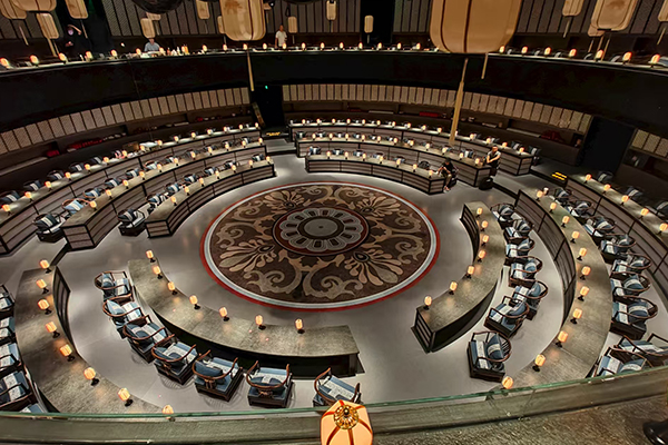 大明宫宴坐落于西安,是一个圆形演绎餐吧,总面积为2058.3平方米。