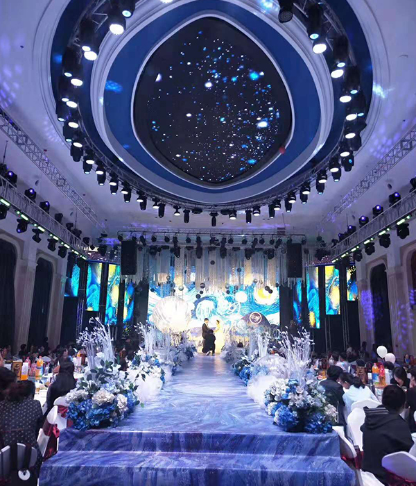 沐鸣2工程师根据宴会厅堂的面积大小、功能的需求选择LAB608线阵音响系统进行扩声。此外,根据宴会厅的功能需求适当增加了数字音频处理器、均衡器、效果器、话筒等周边设备,为婚礼现场带来震撼音效。