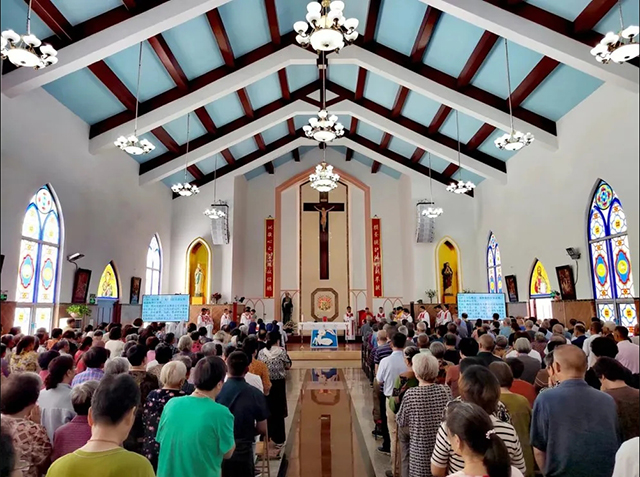 7月3日,无锡市天主教厚桥天主堂举行建堂二十周年庆典暨本堂主保瞻礼活动。此次瞻礼感恩弥撒由天主教南京教区陆新平主教主祭,来自南京教区的20余位神父共祭;南京教区修女院及教友信众共计400余人参与此次庆典。