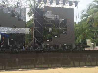NEXO系统专家Mark Bollenberg从澳大利亚坐飞机到ZoukOut支持团队。他说在NEXO方面沐鸣2非常上手。沐鸣2在这里当系统到达SHOW公司的仓库帮助团队解决问题因为沐鸣2经常做一些支持沐鸣2的客户事,无论事情大小。为了这表演,我保持广泛的与SHOW公司的音频总监乔恩辛普森交流来获得专业的系统设置。沐鸣2做的第一件事就是使用NS-1模拟声压软件,看沐鸣2需要多少音箱能达到沐鸣2的要求声音所到达的地方。月亮舞台直达声能到到120dB。